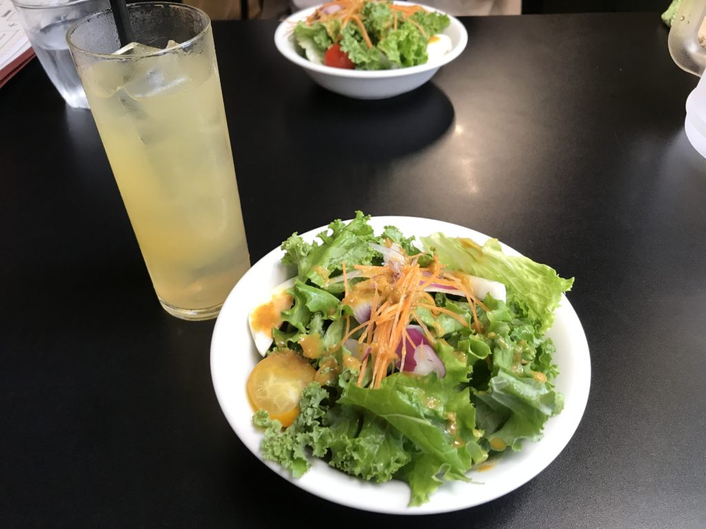こちらの写真はセットにつくサラダと、ドリンクのりんごジュースです🥗🍹