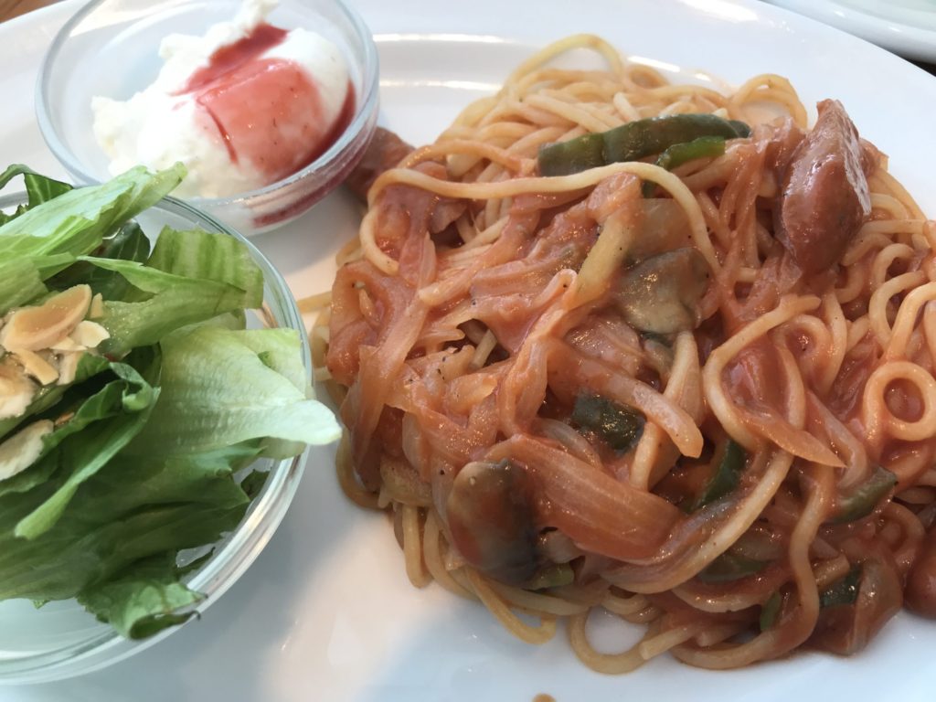 お昼時でお腹が空いていた私は、カフェメニューの定番(?)ナポリタンセットを注文してみました☺️